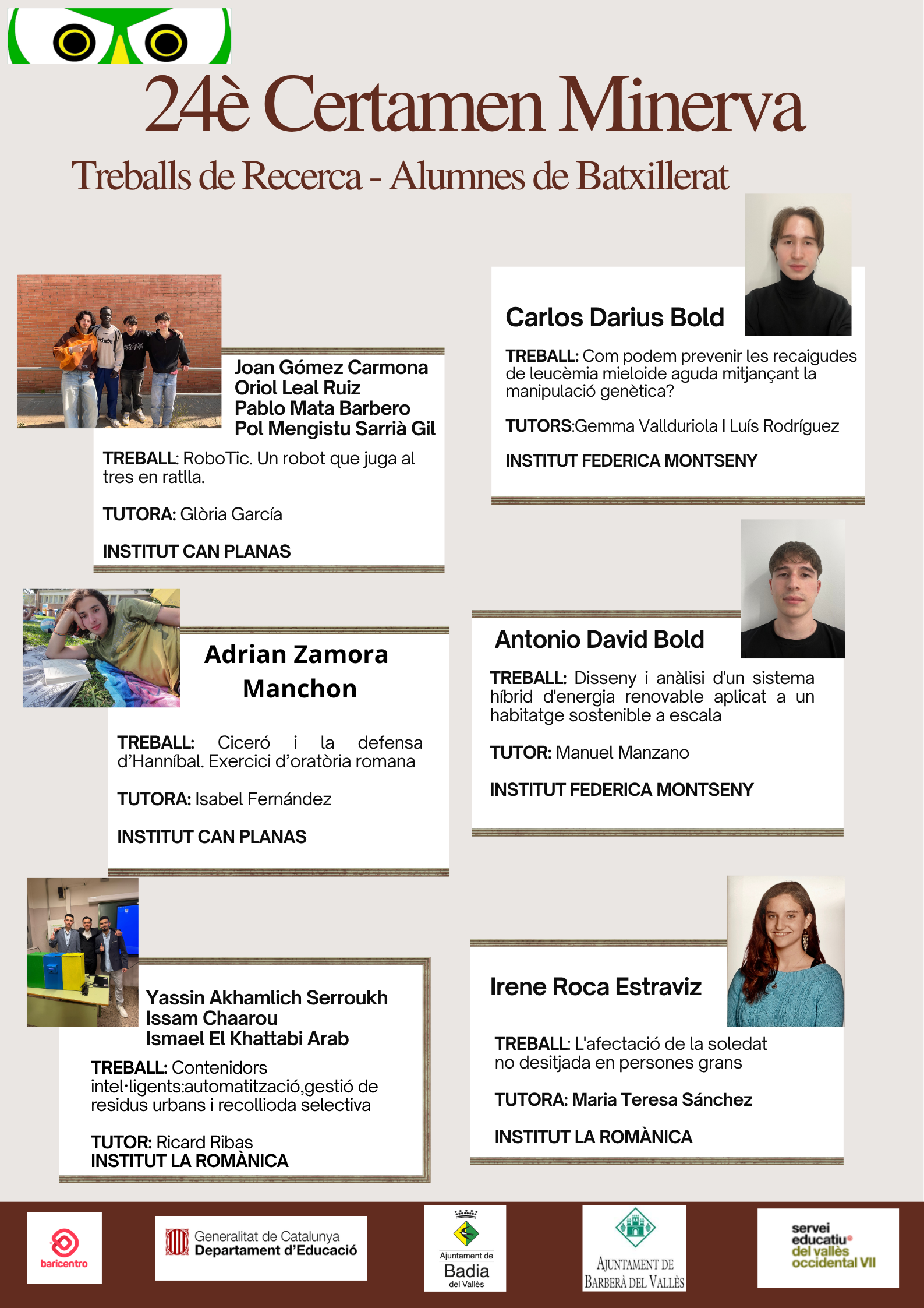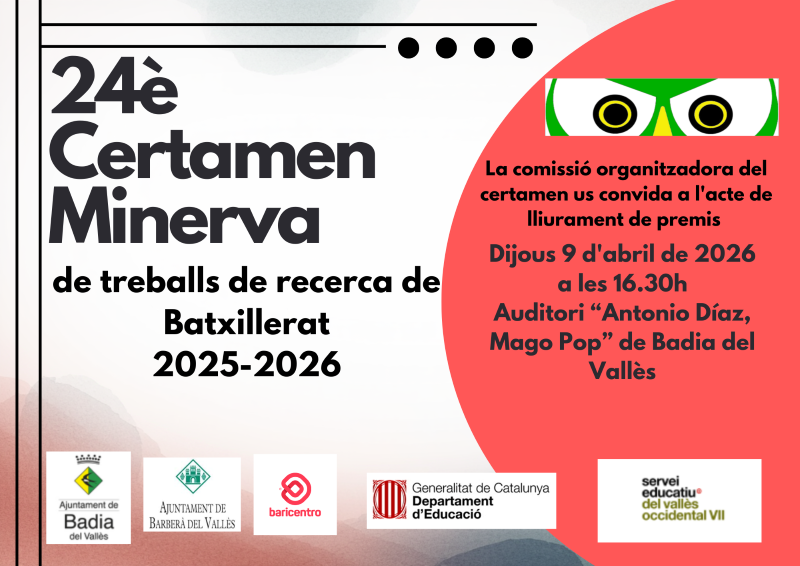 Un any més, el Servei Educatiu del Vallès Occidental VII celebra el talent i el rigor acadèmic amb el lliurament dels premis als millors Treballs de Recerca de batxillerat. Aquest guardó és un reconeixement públic no només a l’esforç i la dedicació de l’alumnat, sinó també a la tasca de guiatge i acompanyament del professorat de la nostra zona.