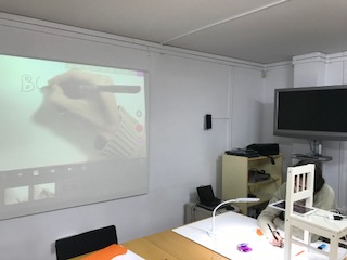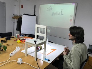 Us proposem crear un petit estudi amb un escenari, focus, objectes variats i un suport pel mòbil o tablet. Podem connectar la tablet amb un adaptador VGA que ens permet veure el que passa a l’escenari en la pantalla del canó. Això ens permet experimentar les possibilitats creatives dels materials i compartir el resultat amb el grup classe..