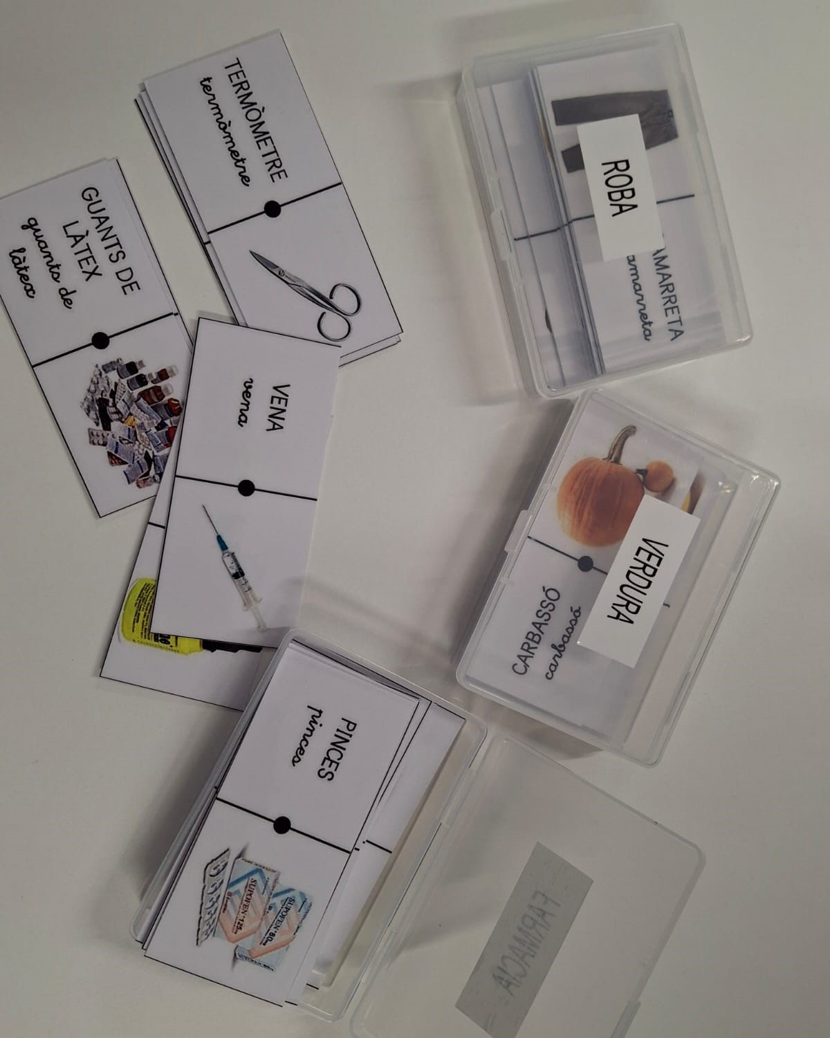 Dominó per treballar i aprendre vocabulari en llengua catalana format per targetes o fitxes plastificades amb vocabulari temàtic i una fitxa amb activitats.