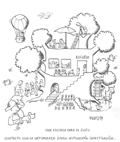 Hem de fer una escola diferent, amb propostes que parteixin dels alumnes, i no de les programacions; que no siguin tancades dins de l’aula (encara que ara no es pugui físicament), perquè no té sentit que els alumnes passin de 6 a 8 hores asseguts al mateix lloc fent de tot, perquè d’aquesta manera és difícil que trobin i desenvolupin les seves aptituds (i que es compleixi així amb el què diu la llei).