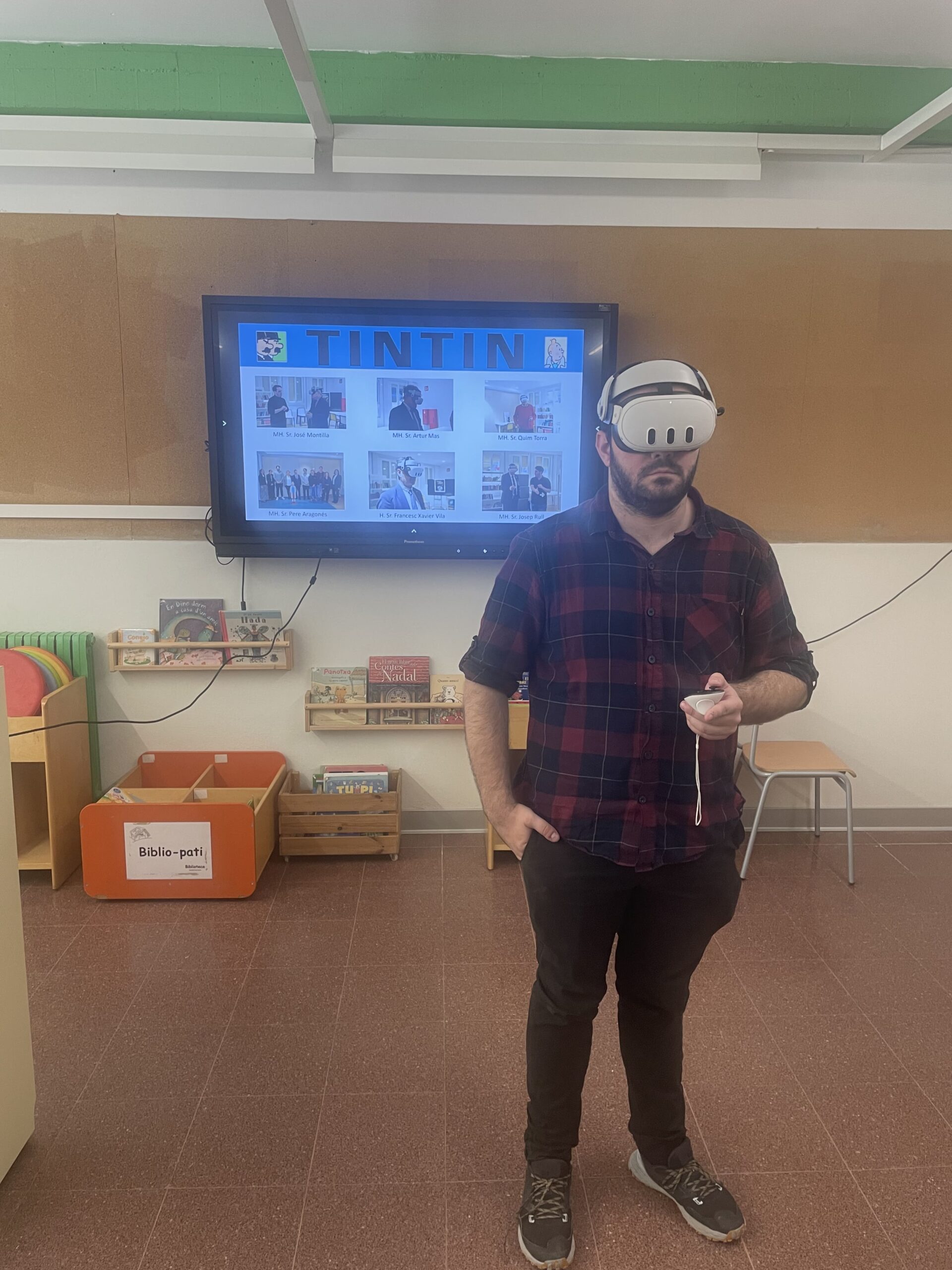 El 2n Seminari de Referents de Biblioteques Escolars s’ha celebrat a l’Escola Can Sorts de Sentmenat, amb una jornada dedicada a l’anàlisi de l’experiència immersiva Tintin60CAT de l’equip @vrieti_official de l’Institut Esteve Terradas i Illa de Cornellà de Llobregat.