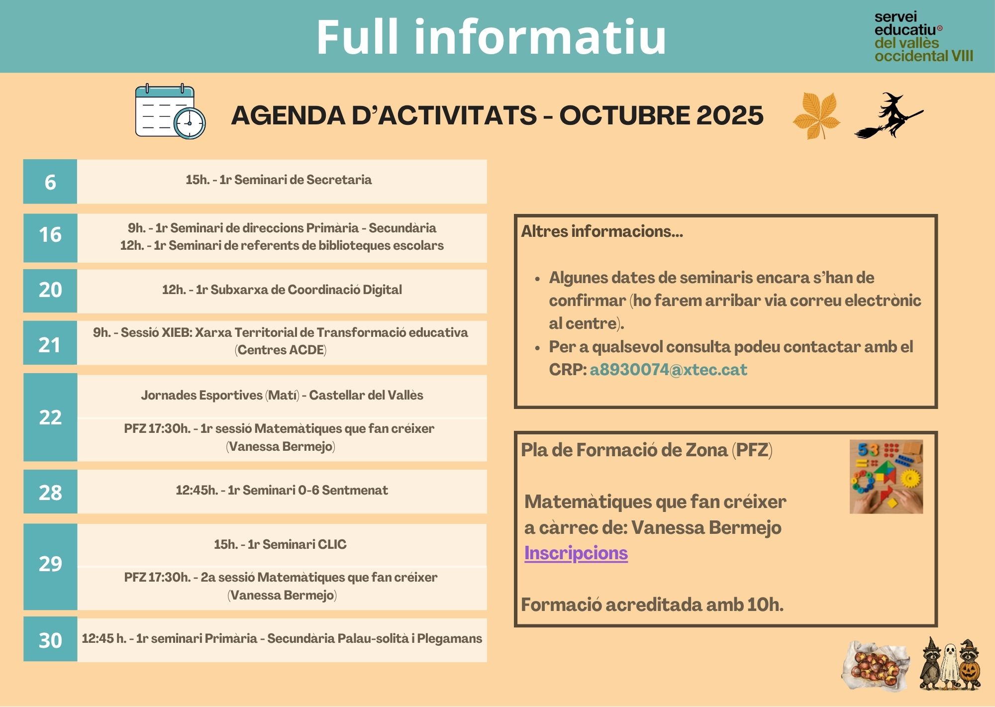 Full informatiu Octubre 2025 Feu un comentari / Per Lluís del Castillo / 1 d'octubre de 2025 / Portada Hem publicat el nostre full informatiu del mes d’octubre amb les activitats programades: