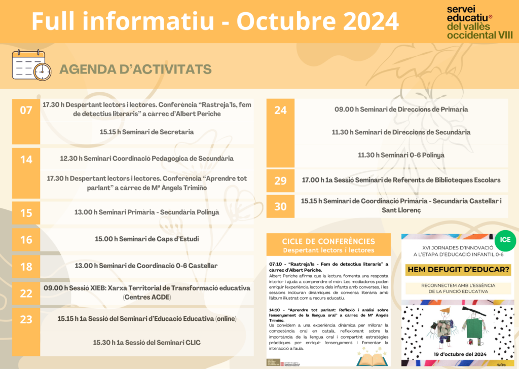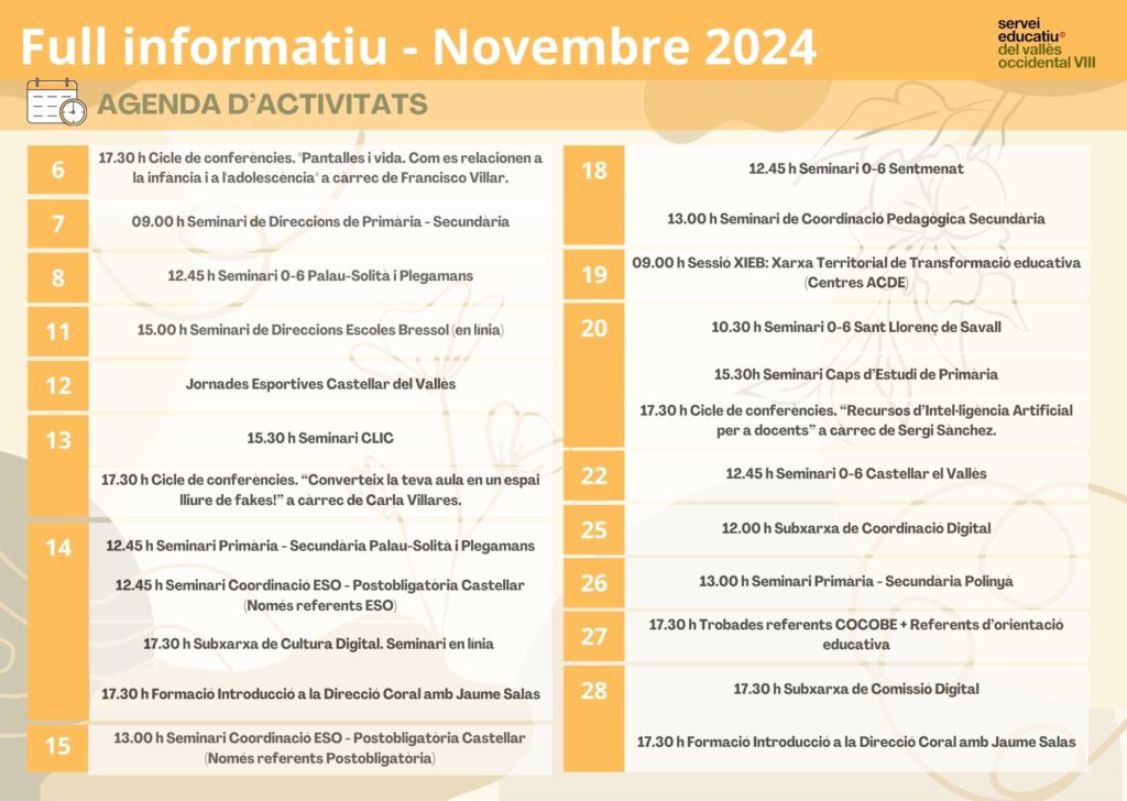 Compartim amb vosaltres el full informatiu on trobareu l’agenda de les activitats del Novembre vinculades al Pla de Formació de