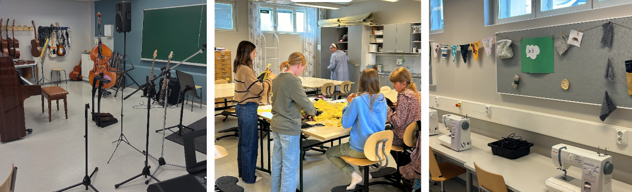 El dimecres també hem pogut visitar l’escola Värberga, una escola molt més gran i que comparteix edifici amb una escola de finès com a llengua materna. Com a la resta de centres, ens ha cridat l’atenció l’exterior de  l’edifici i la zona de pati: són zones molt cuidades, amb moltes estructures de joc per a les diverses edats, amb zones esportives i moltes oportunitats per gaudir i aprendre. Ens han explicat que, a Finlàndia, surten cada dia al pati (de fet tenen estones d’esbarjo més curtes, però més sovintejades)  independentment del temps, mentre que  la temperatura no sigui inferior a -20 °C! A l’escola de Värberga ens han explicat amb detall el seu projecte d’educació sostenible i també hem pogut veure sessions del treball de fusta, tèxtil i fang i pintura amb alumnes de 5è.