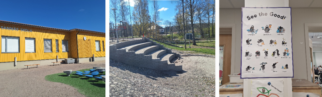 L’escola de Sannäs està situada en un entorn més rural. Hi assisteixen 96 alumnes de la zona i treballen d’una manera més interdisciplinària i menys tradicional que els altres centres que hem visitat. Organitzen els continguts en Themes o projectes, que integren continguts de totes les àrees curriculars, excepte les matemàtiquesDurant bona part del matí hem pogut entrar i observar diverses aules i veure com treballaven els diferents grups. Hem vist activitats de música amb els alumnes de 6è, que practicaven amb diferents instruments, També hem compartit una estona amb alumnes de 4t que estan treballant el tema d’Europa i hem pogut conversar amb ells en anglès, llengua de la qual tenen un molt bon domini. Amb els alumnes de 1r hem pogut observar de primera mà com es promou l’autonomia personal i els hàbits de treball.