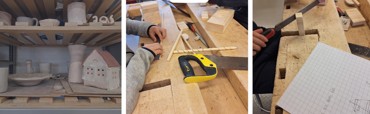 l’escola Kvarnbackens hem vist com els nens i nenes de 4t de primària duien a terme activitats de costura i fusteria. Els mateixos alumnes dissenyen projectes a tall individual o en parelles i els l’elaboren amb el suport del mestre o l’assistent. Val la pena destacar el domini de les eines i destreses necessàries, així com la seva autonomia i emprenedoria. A més a més, hem pogut observar el treball de llengua i matemàtiques a una aula de 1r de primària. La tutora té un paper fonamental durant el desenvolupament de la sessió i guia el procés d’aprenentatge dels alumnes, dels quals destaquem el nivell de calma i atenció durant la sessió que dura 45 minuts i la fan 4 cops per setmana. Els alumnes s’inicien en el procés de la lectoescriptura a 1r de primària utilitzant com a codi la lletra d’impremta directament. Pel que fa a les matemàtiques, segueixen llibre de text i valorem molt positivament el càlcul mental, ja que alumnes d’aquest nivell efectuen operacions de suma i resta combinades amb una destacable agilitat mental.