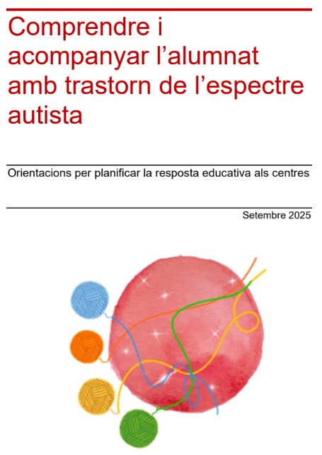 Les següents orientacions per planificar la resposta educativa als centres “Comprendre i acompanyar l’alumnat amb trastorn de l’espectre autista” té com a objectiu principal oferir els coneixements bàsics que ajudin els i les docents a entendre la manera de fer i entendre de l’alumnat amb TEA.