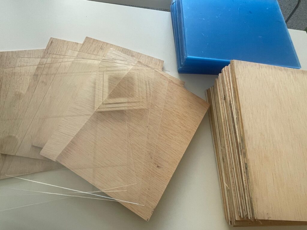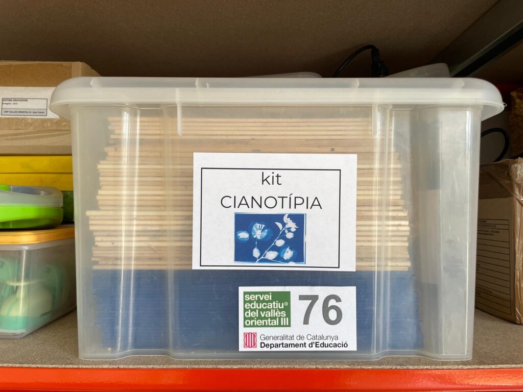 El kit inclou material per a 30 alumnes: lamines de fusta i plaques de metacrilat DIN A4, safates de rentat i agulles per a les exposicions. Els líquids van a càrrec del centre.