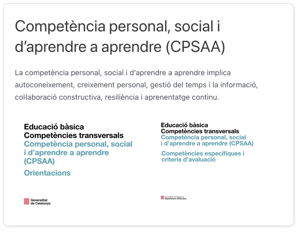 Aquestes competències es desenvolupen de manera integrada en totes les situacions d’aprenentatge i són imprescindibles per formar ciutadans actius, crítics i compromesos.