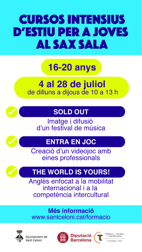 El pròxim mes de juliol s’iniciaran els següents cursos al Sax Sala de dilluns a dijous en horari de matins