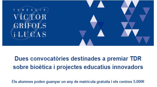 Premis a treballs de recerca sobre bioètica en el Batxillerat Objectiu Amb la finalitat d’estimular la inclusió de la dimensió ètica en la recerca, la Fundació Víctor Grífols i Lucas convoca tres premis de recerca per a batxillerat. Seran guardonats els tres millors treballs de recerca desenvolupats en l’àmbit de la bioètica durant […]