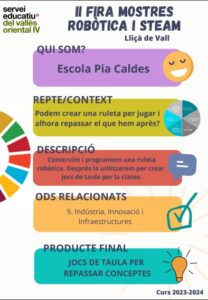 Escola Pia de Caldes: 2a FIRA de mostres de Robòtica i Steam a Lliçà de Vall Feu un comentari / Per admin / 24/05/2024 / 2a edició Fira a Lliçà de Vall