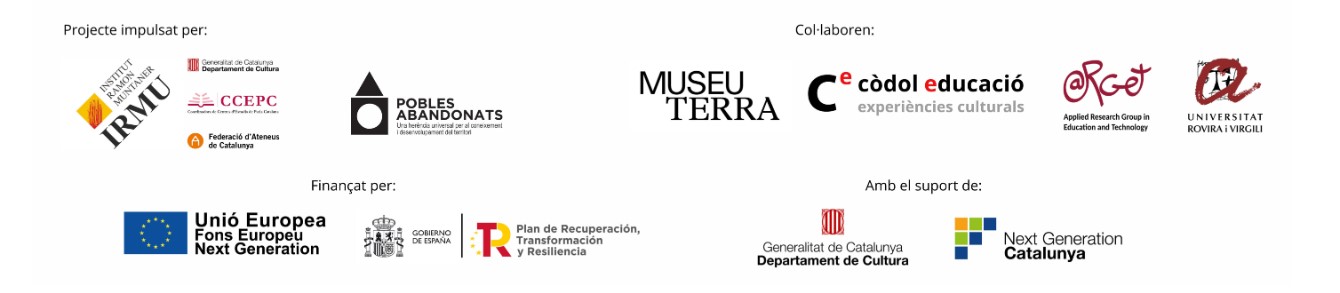 Aquest projecte és una proposta de l’Institut Ramon Muntaner, el Museu Terra – Fundació Carulla, Còdol Educació i ARGET de la Universitat Rovira i Virgili en el marc el projecte “Pobles Abandonats”.