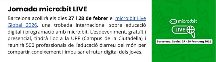 El febrer de 2026, Barcelona es convertirà en el punt de trobada internacional més important sobre educació digital i programació amb micro:bit. Micro:bit Live Global 2026, organitzat per la Micro:bit Educational Foundation amb el suport del Departament d’Educació i l’organització sense ànim de lucre Sistema THEAD, reunirà 500 professionals de l’educació d’arreu del món amb un objectiu comú: inspirar-se, compartir coneixement i construir plegats futurs digitals per als joves.