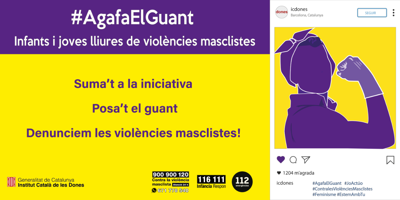 Des de l’Institut Català de les Dones s’ha posat en marxa la campanya de sensiblització #AgafaElGuant Infants i joves lliures de violències masclistes per fer front a les violències masclistes en el marc de la crisi de la Covid19.